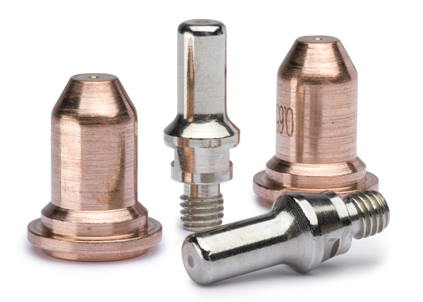 Las antorchas Tomahawk® incluyen electrodos, distribuidores de gas, boquillas, copas de retención y otros accesorios para el corte por plasma